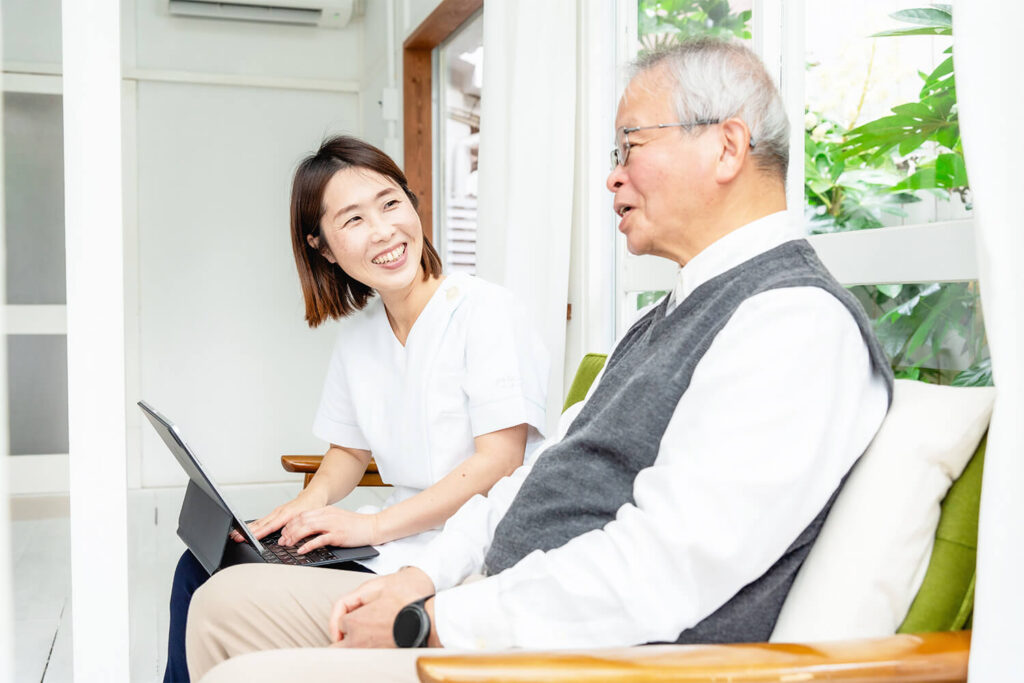 ご自宅等にお伺いする対面方式とオンライン(zoomやLINE電話を)でのオーダーメイドのリハビリを行います。